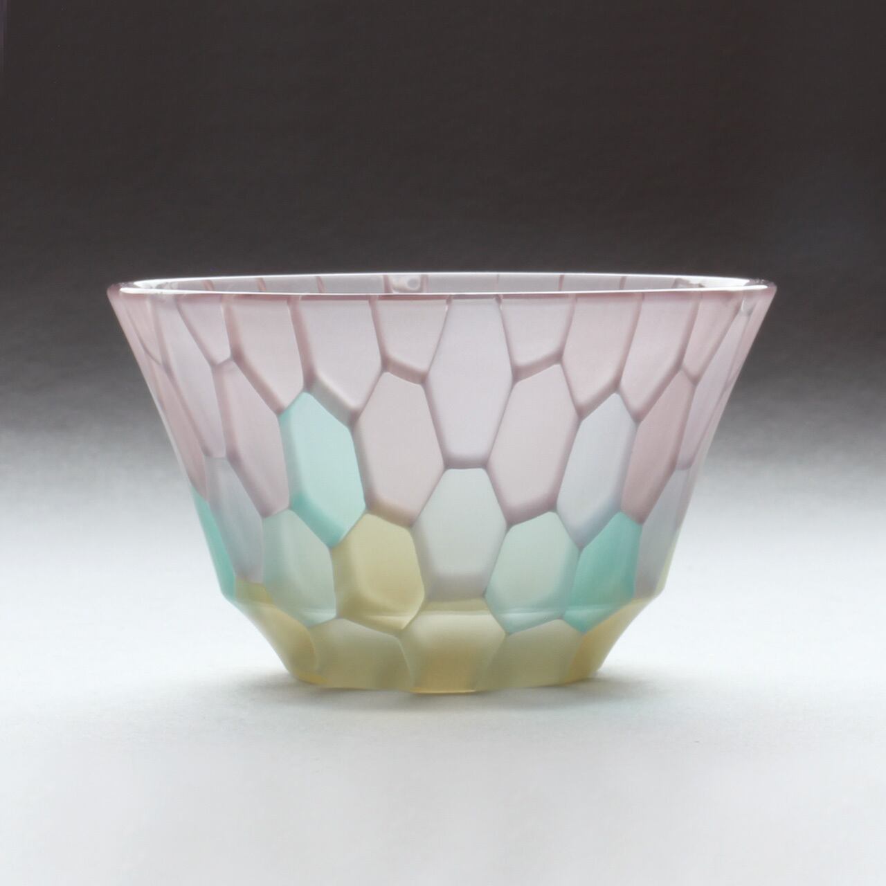 Unlike ordinary blown glass, sheet glass is softened in an electric kiln and shaped into a vessel. Therefore, you can enjoy the beautiful honeycomb pattern all the way to the bottom of the vessel.