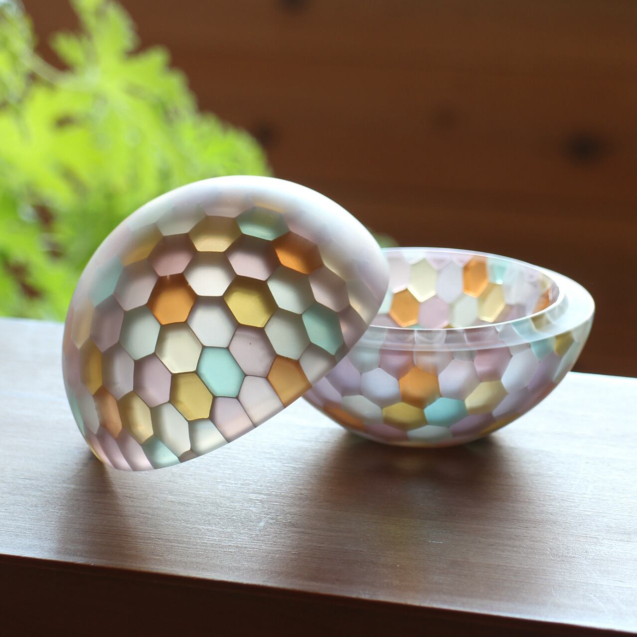六角形のハニカム(蜂の巣)模様の蓋物。