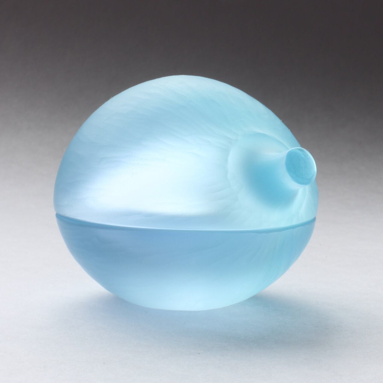 2~3色の色ガラスを溶かし合わせた塊から削り出して形を作った蓋物。