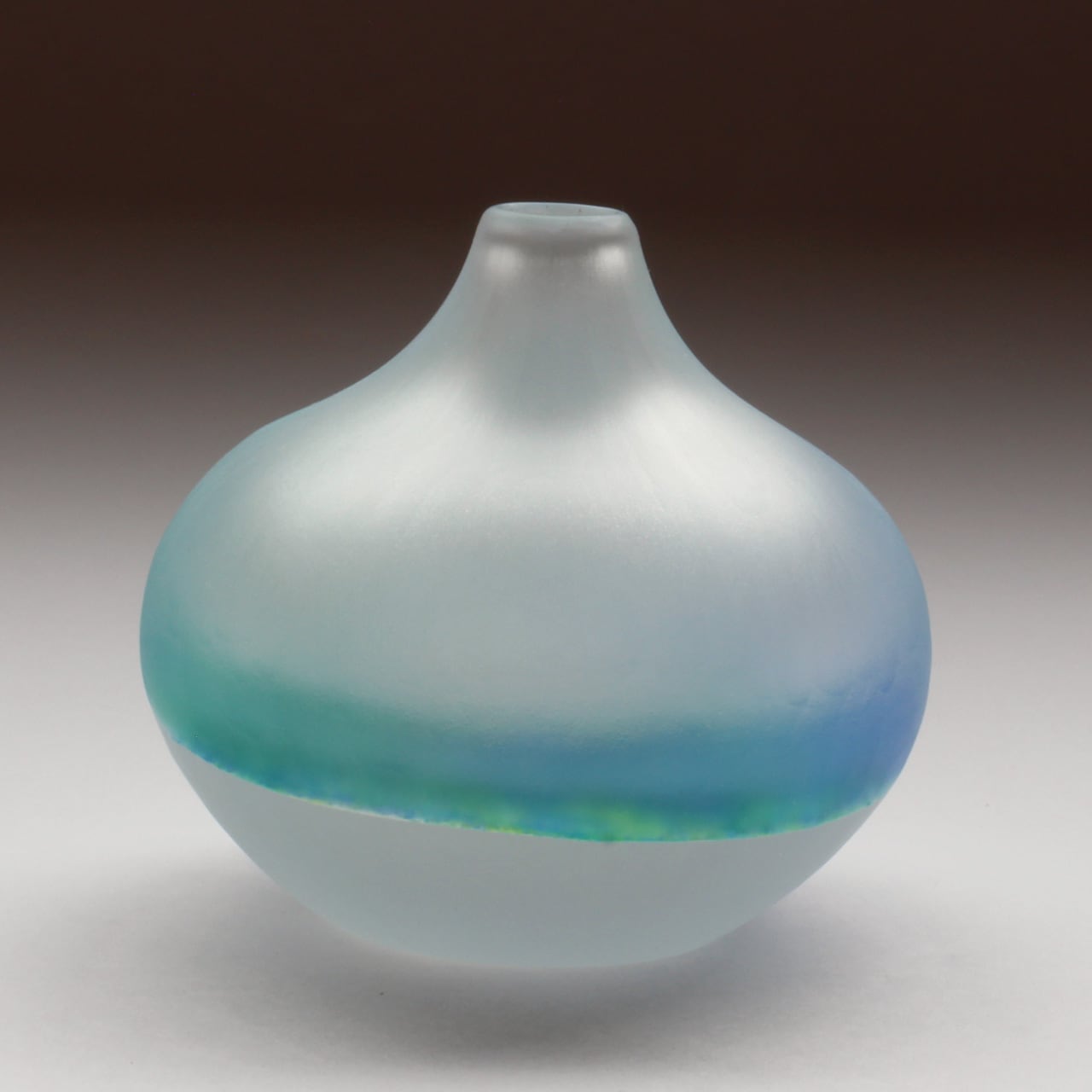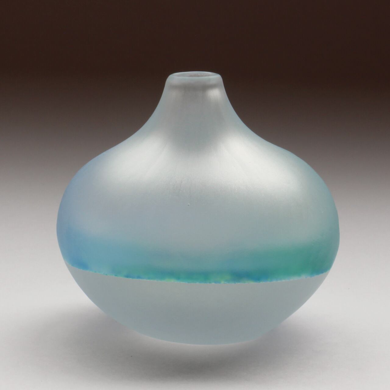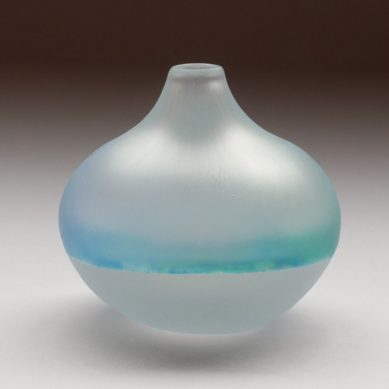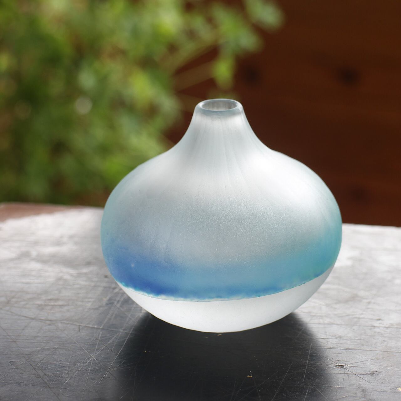 Since the outside has a frosted glass finish that leaves shaving marks, several types of blue and white sandwiched between the transparent glass appear to spread across the glass as if they were blurred.